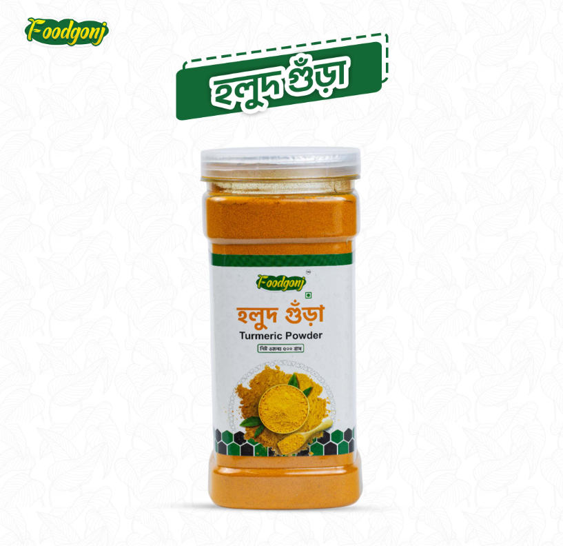 হলুদের গুঁড়া: গ্রামের কৃষকের থেকে ক্রয় কৃত হলুদ শুকিয়ে পরিষ্কার পরিচ্ছন্ন পরিবেশের গুঁড়া করা হয়।